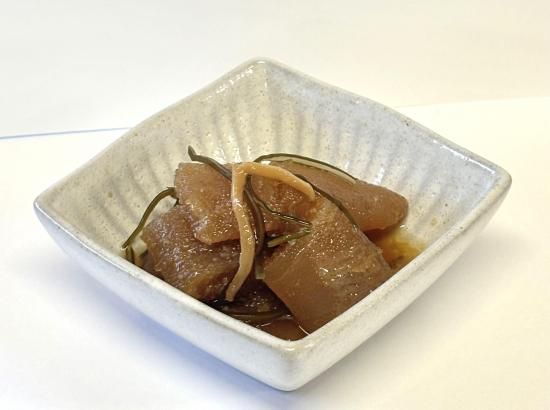 食感の良い数の子をスルメや昆布と一緒に醤油で漬け込みました。昆布の旨味とトロ味が味を深めた逸品です。