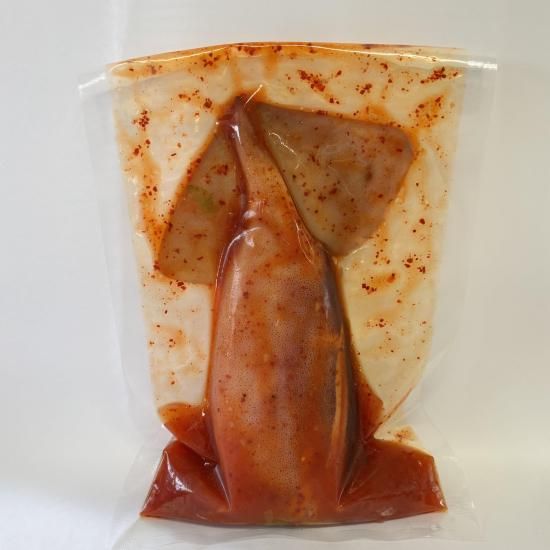 丸ごとのイカの中にキャベツ漬、白菜漬、生姜、人参などを詰めたユニークで可愛い漬物です。